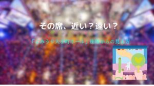 「近くで推しを見たい」という気持ちは大切ですが、遠い席だからこそ演出全体を楽しめるという視点もあります。